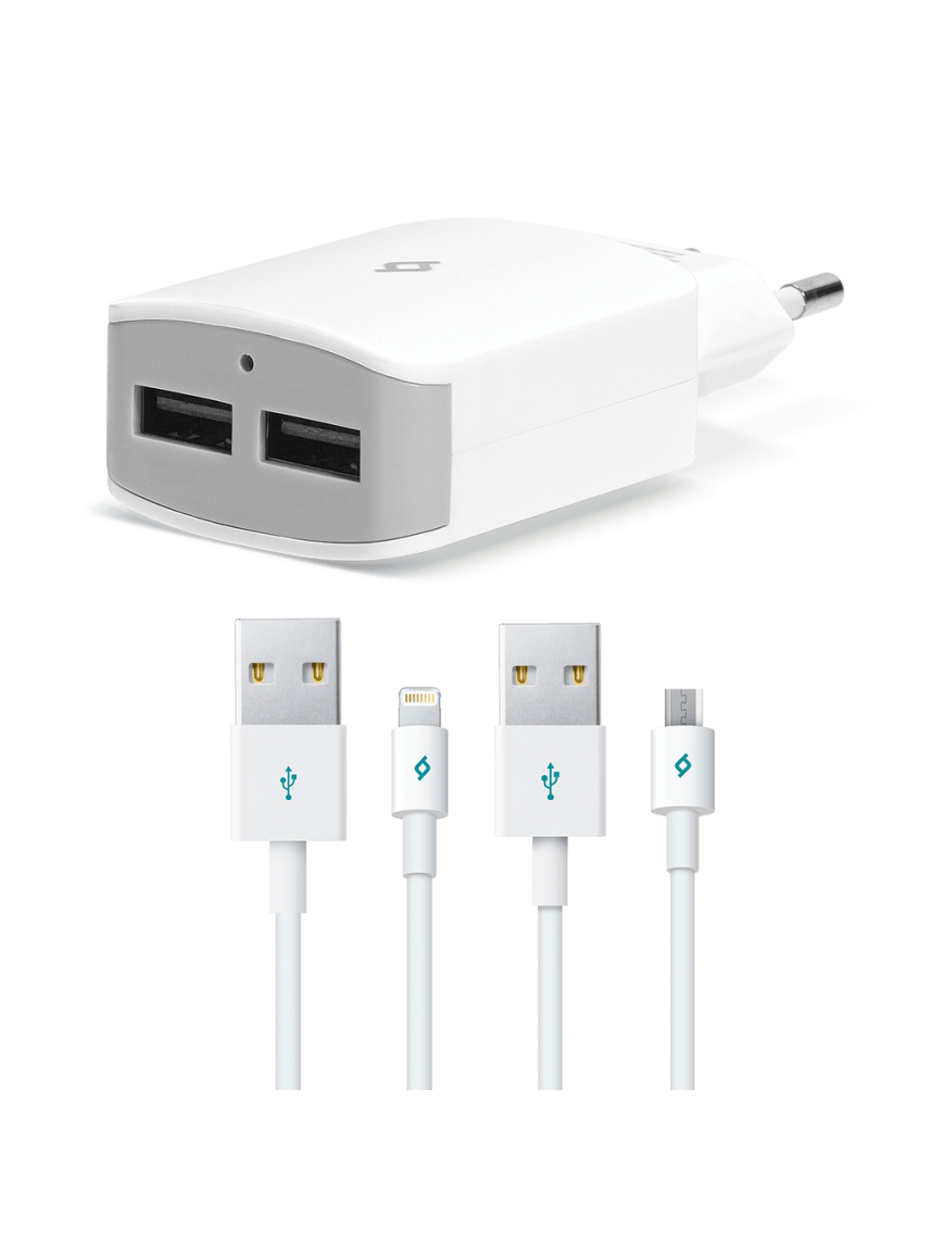 ttec QuickCharger Duo 3.1A Seyahat Şarj Aleti USB (çift kablo) Beyaz