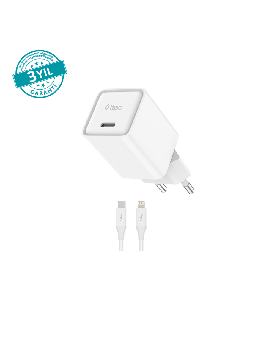 ttec SmartCharger 20W PD GAN Seyahat Hızlı Şarj Aleti + USB-C - Lightning 150cm Kablo
