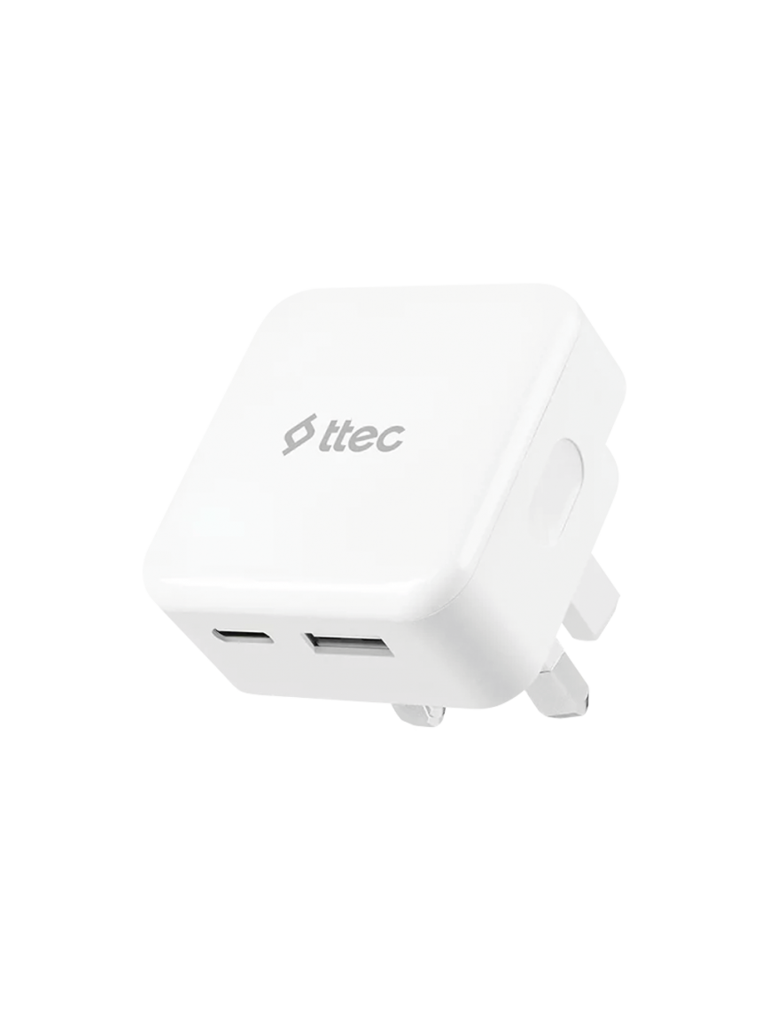 ttec SmartCharger Duo 30W PD İngiltere (UK) Katlanır Seyahat Hızlı Şarj Aleti Beyaz